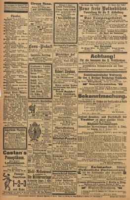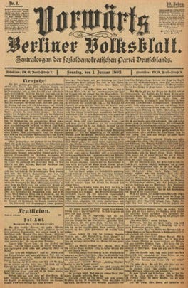 The dense, multi-column layout of Vorwärts. An AI tool, blind to visual structure, may incorrectly merge text from an editorial and an adjacent advertisement, leading to “context collapse”